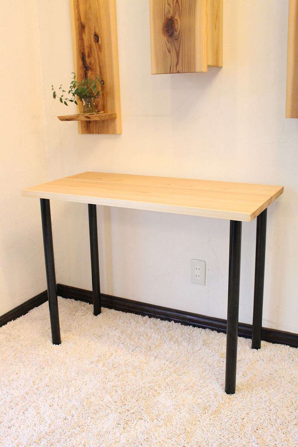 クリプトメリア(杉)無垢ワーキングデスク アイアンレッグ(黒)